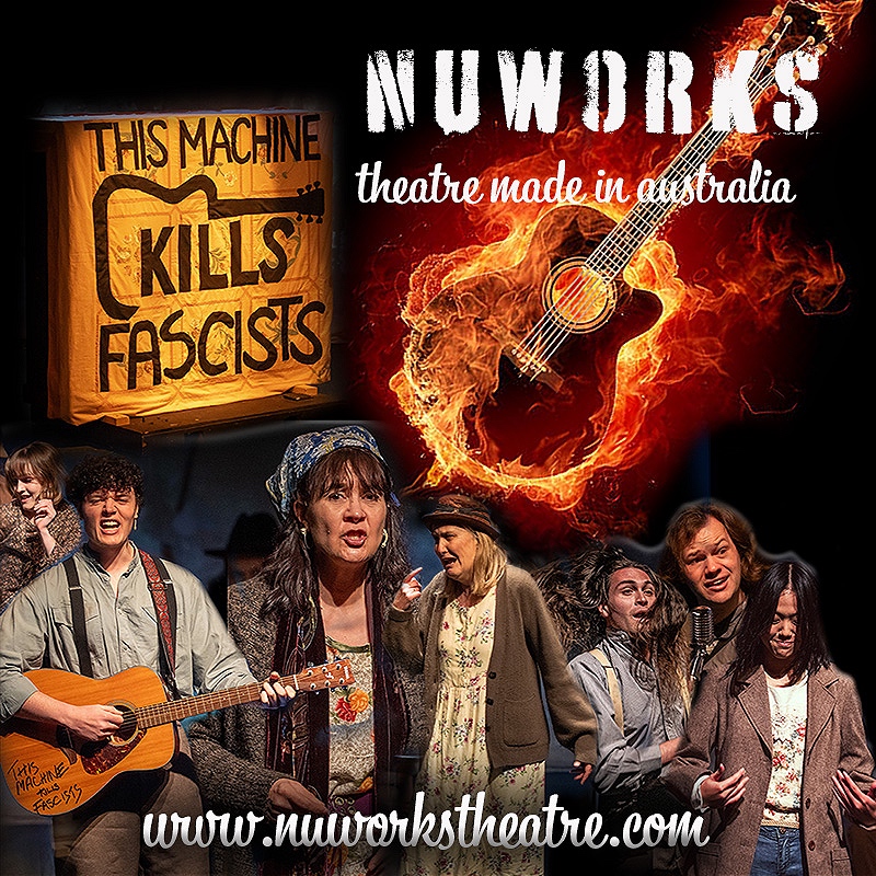 This Machine Kills Fascists is a stage spectacle inspired by the life and work of Woody Guthrie, the legendary American folk singer and civil rights activist. The production is neither musical, nor a classic biographical performance. It is Epic after the ideas formulated by Bertolt Brecht and his collaborators.